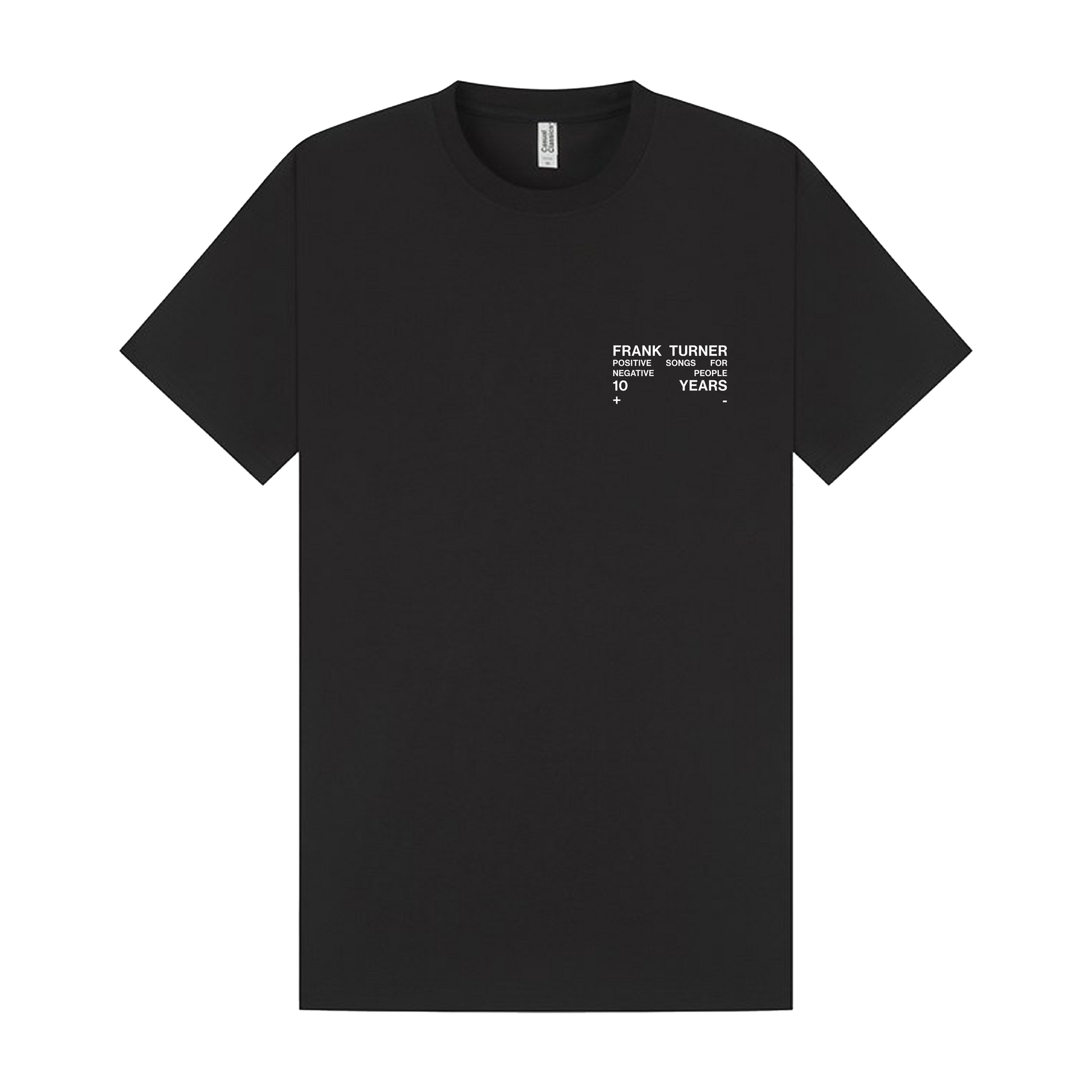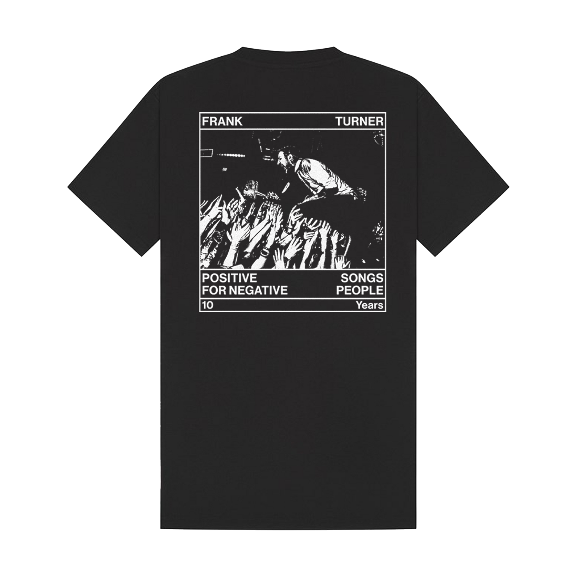 10th Anniversary 'Positive Songs for Negative People' Album T-Shirt – printed on classic black tee.