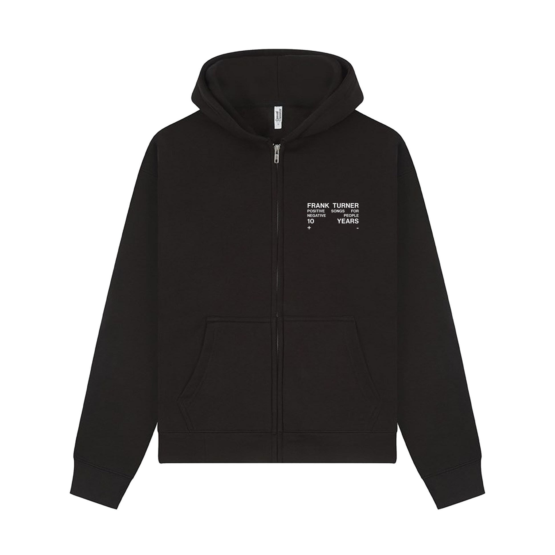 10th Anniversary 'Positive Songs for Negative People' Album Zip Hoodie – printed on classic black tee.